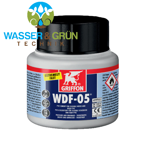 1. Rohre rechtwinklig absägen, abschrägen und entgraten. 2. Klebeflächen mit Griffon Cleaner und Cleaner Cloth reinigen. 3. Klebstoff schnell und gleichmäßig rundum (4-6x) auf beide Klebflächen auftragen (Rohrende dick, Muffe dünn). 4. Klebeverbindung sofort fügen. Überschüssigen Klebstoff entfernen. Verbindung die ersten 10 Minuten nicht mechanisch belasten. Nach Gebrauch Behälter sofort gut verschließen.