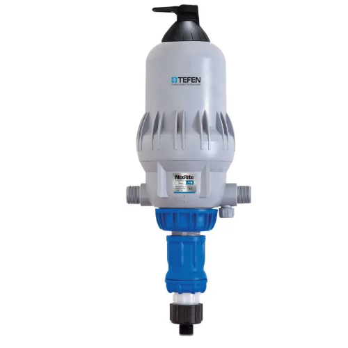 Die MixRite™ Dosierpumpe ist ein proportionales Dosiergerät, welches die Dosierung bei Druck- und Durchflussschwankungen konstant hält. Sobald Wasser durch die Leitung fließt, startet die MixRite™ Dosierpumpe automatisch und stoppt erst, wenn auch der Wasserfluss unterbrochen ist. Die Lösung wird kontinuierlich in einem exakten Verhältnis zum Wasserfluss beigefügt. MixRite™ Dosierpumpen werden nur mit Wasser angetrieben, es ist keine weitere Energiequelle notwendig.