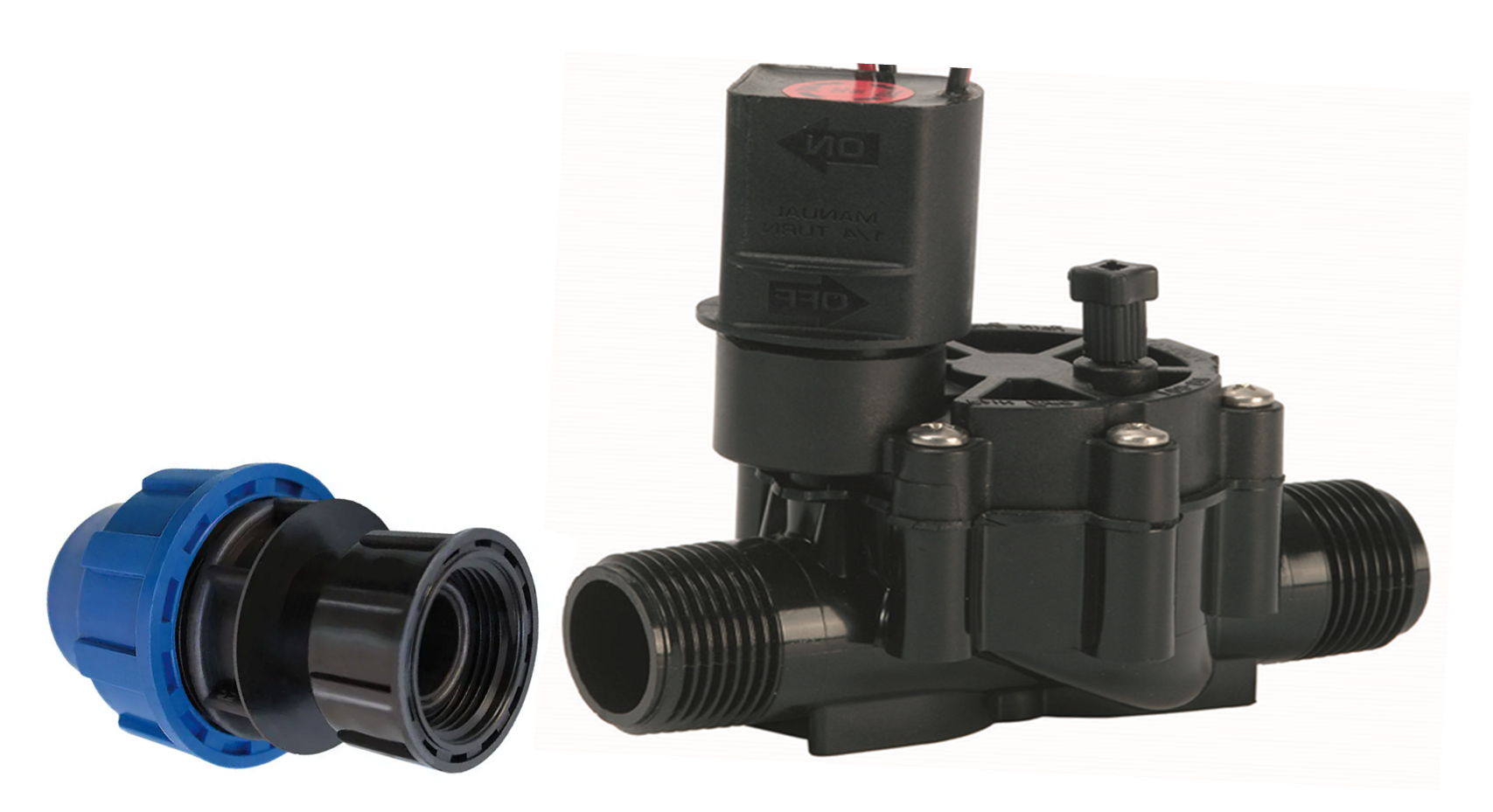 Magnetventil 100-DV-MM 24VAC + 1 Stück PE-Kupplung 25 x 1" IG Überwurf (PN16 mit fixiertem O-Ring)