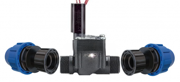 PGV-100 1" AG/AG 24 VAC Magnetventil Aussengewinde x Aussengewinde + 2 St. PE-Kupplung 25 /32 mm x 1" IG Überwurf