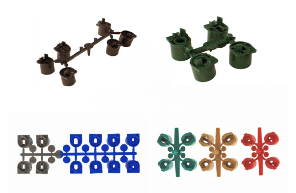 MPR-Düsensätze mit aufeinander abgestimmten Durchflussmengen bei unterschiedlichen Wurfweiten, jeder Satz enthält eine Düse für 90°, 120°, 180° und 360°