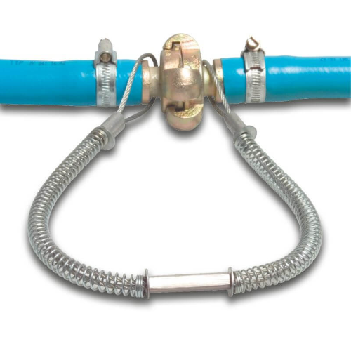 Sicherheitskabel, um zu verhindern, dass die Kupplungen unter Druck aus dem Schlauch herausgeschleudert werden.